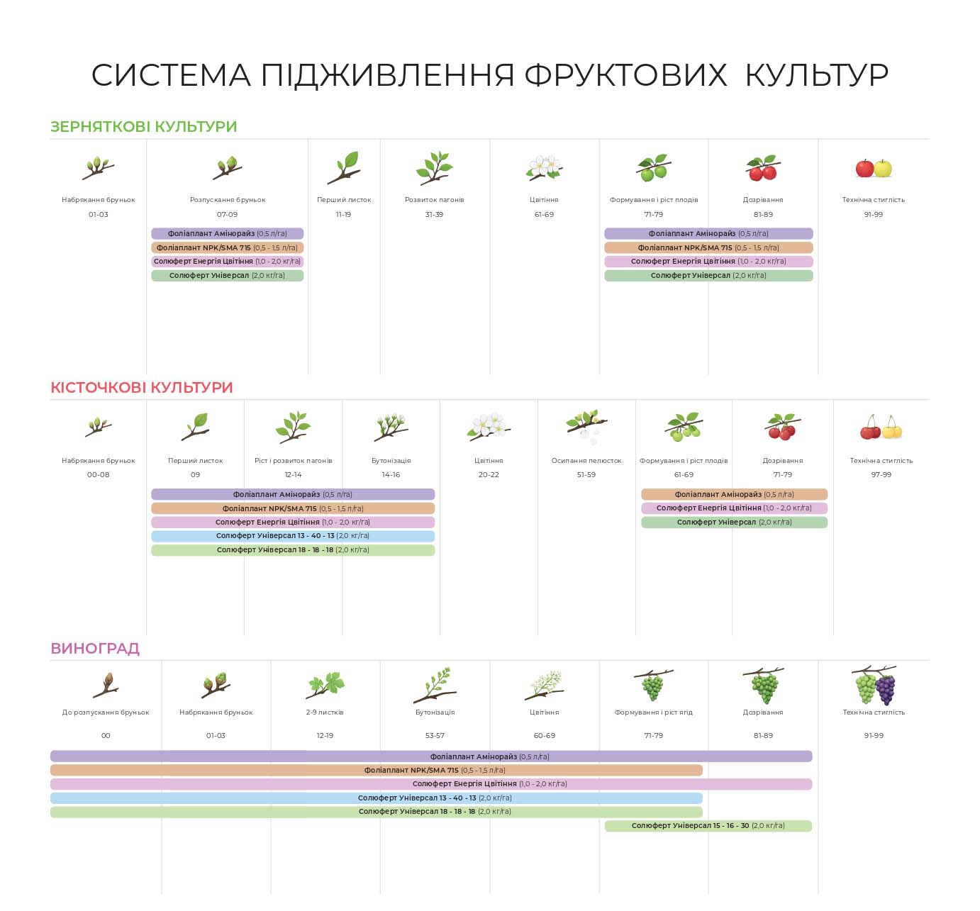 Позакореневе підживлення зернових колосових (озимих та ярих), кукурудзи, зернобобових (соя, горох, квасоля, нут), олійних культур (соняшник, ріпак озимий та ярий): 0,5 – 2 кг/га (1 – 3 рази з інтервалом 15 днів);